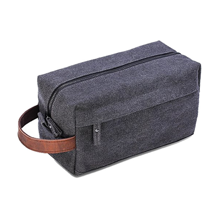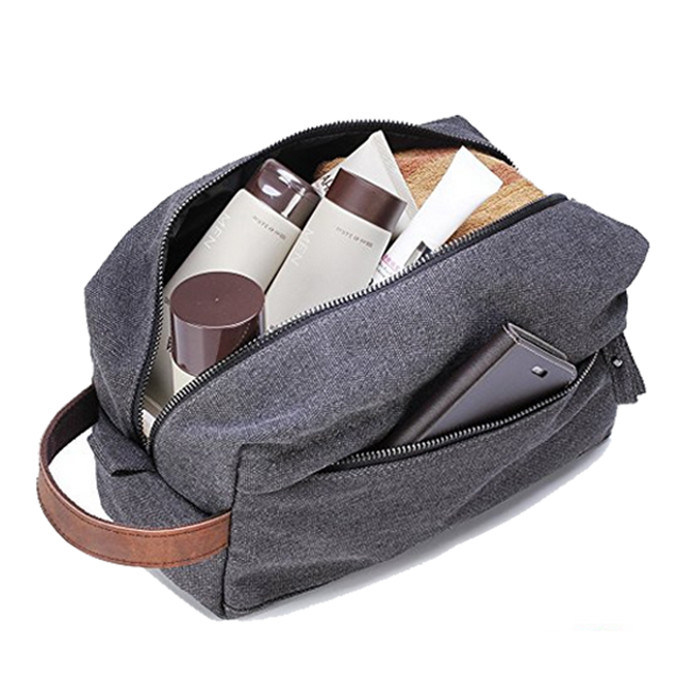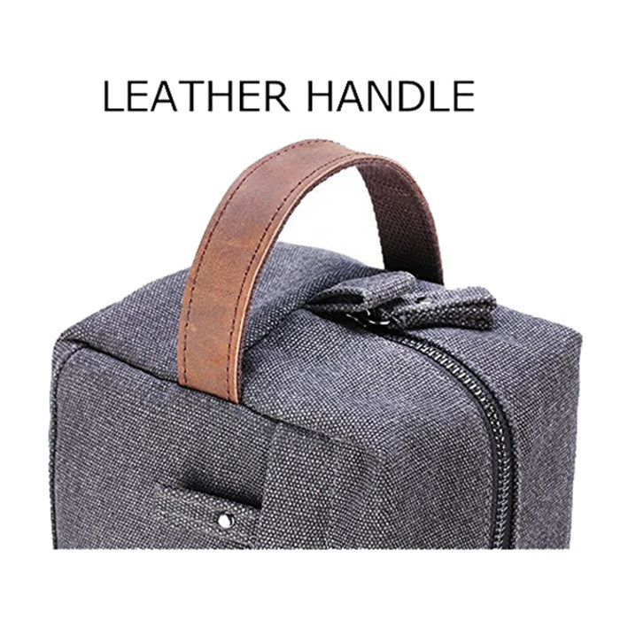 Tas Perlengkapan Mandi Tahan Air Kanvas Tahan Lama untuk Pria dengan Gagang Kulit